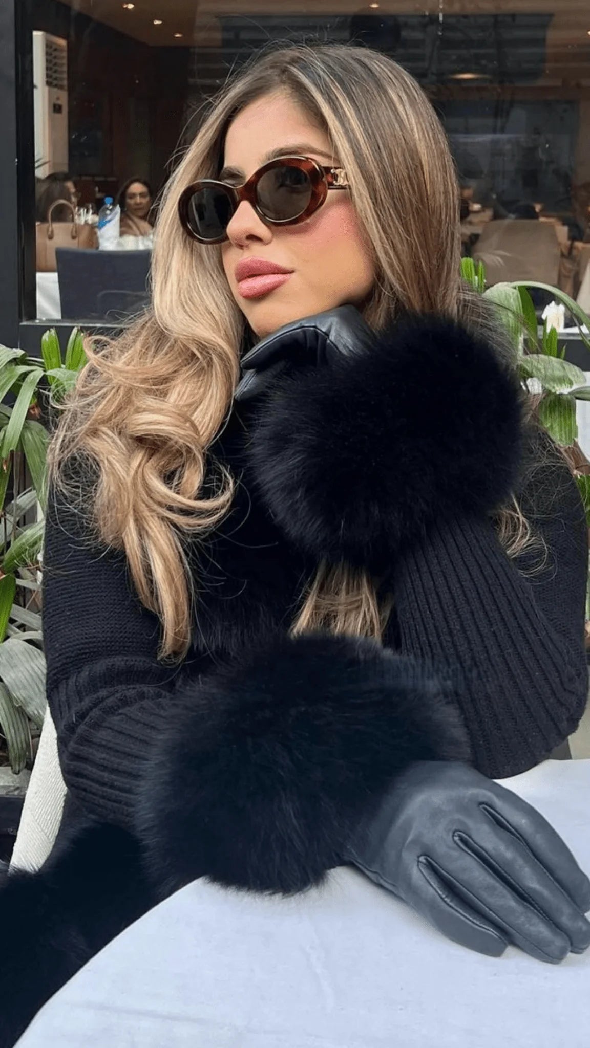 Strick-Cardigan mit breiter Faux-Fur-Blende vorn und Faux-Fur-Manschetten. Hüftlange Passform, Bindegürtel zur Taillenbetonung, elastischer Feinstrick an Rumpf und Ärmeln für Komfort.