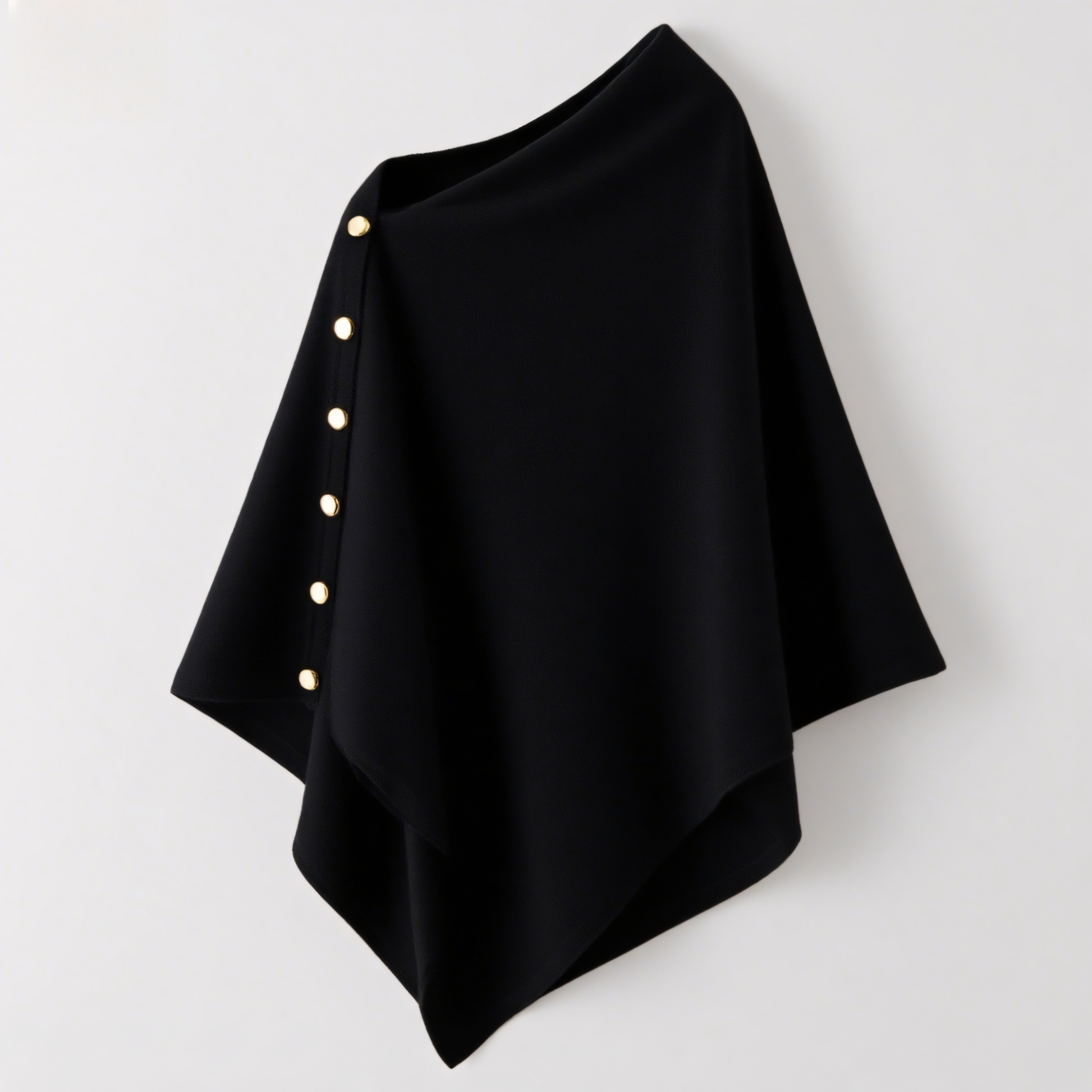 Dieser asymmetrische Strick-Umhang mit seitlicher Knopfleiste ist das perfekte Layering-Piece für moderne Frauen, die Stil, Komfort und Vielseitigkeit schätzen.